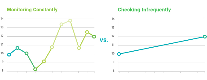 The perception of performance can be different based on whether you monitor the same portfolio either constantly or infrequently.
